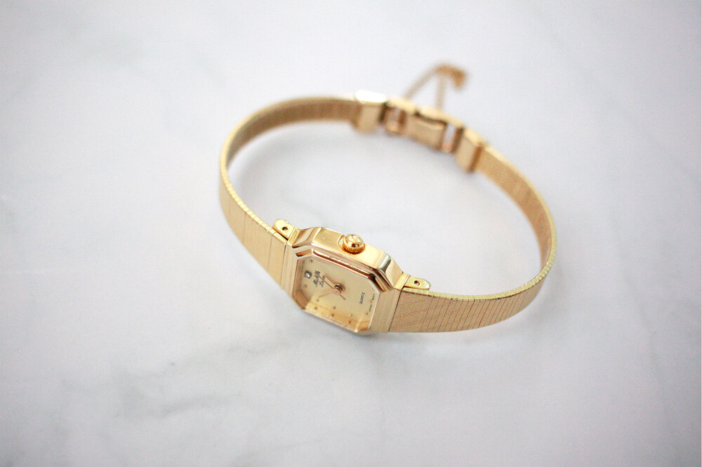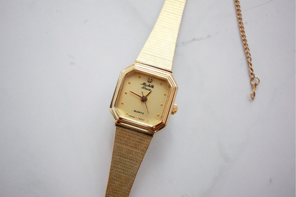 전형적인 빈티지 시계 디자인입니다. 옥타곤 모양의 베젤이 매력포인트구요, 골드톤에 심플한 디자인이라 데일리 시계를 찾고 계시는 분을 위해 추천 드려요 :)