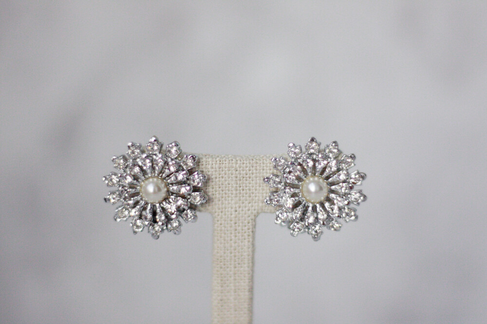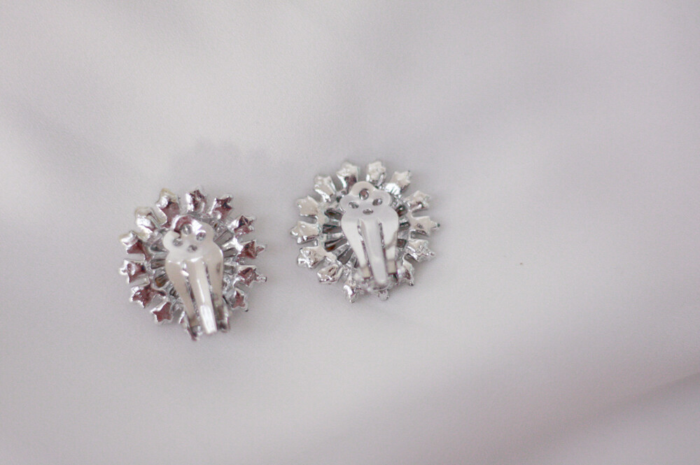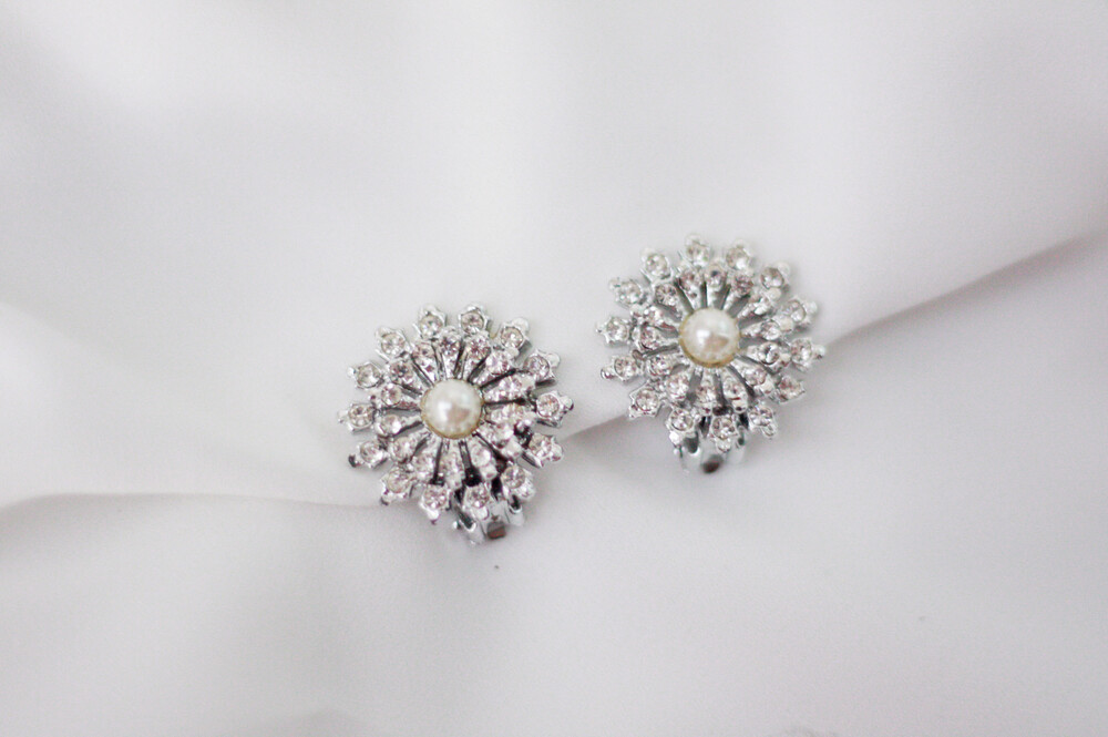 단정한 느낌을 주면서도 꽃잎의 라인스톤의 반짝임이 포인트 되는 데이지 클립형 이어링입니다. 두 겹의 꽃잎으로 이루어져있으며, 중앙은 모조 진주로 장식되어 있어요. 계절과 무관한게 데일리로도 과하지 않은 제품이어요 :)